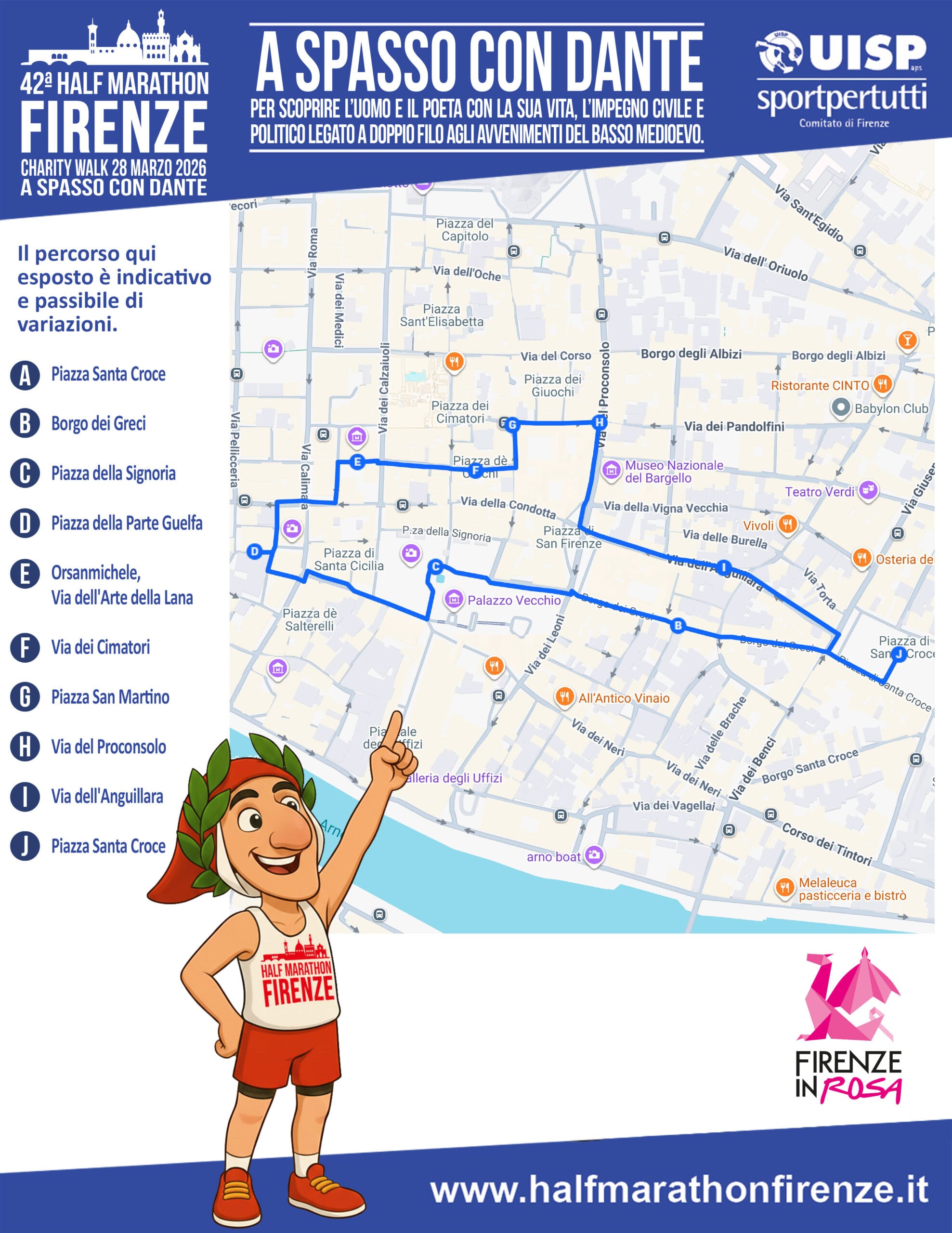 SÁBADO 28 de marzo de 2026: con motivo de la 42ª Half Marathon Firenze, UISP Firenze organiza la CHARITY WALK anual: