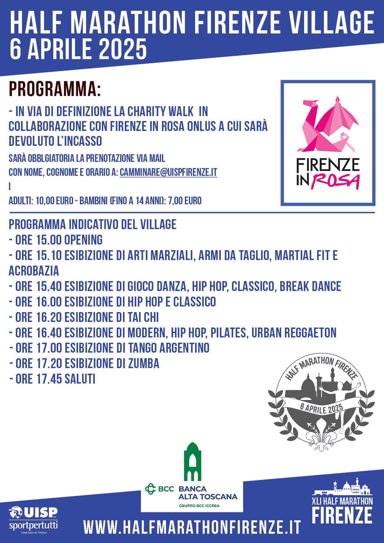 Cada año, el día anterior y el día de la carrera, se celebra la Media Maratón Firenze Village, en cuyo interior se pueden encontrar stands de exposición y venta y donde, en el escenario central, se llevan a cabo las actuaciones de los clubes deportivos afiliados a la UISP. Florencia de la danza y las artes marciales.